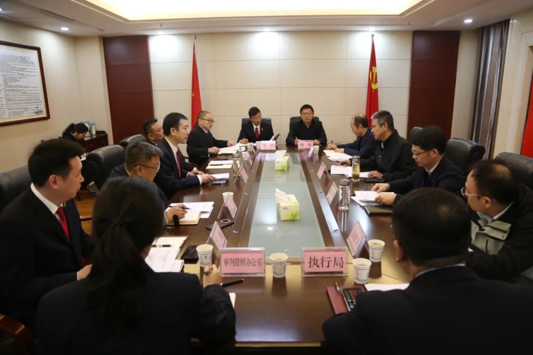 10月31日上午,荆门中院党组书记、院长何震一行到钟祥法院走访调研。