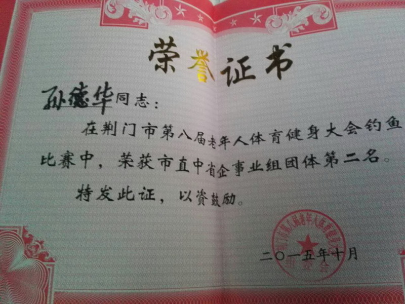 10月10日荆门中院组织老干部参加了全市第八届老年人健身大会钓鱼比赛,喜获好成绩。